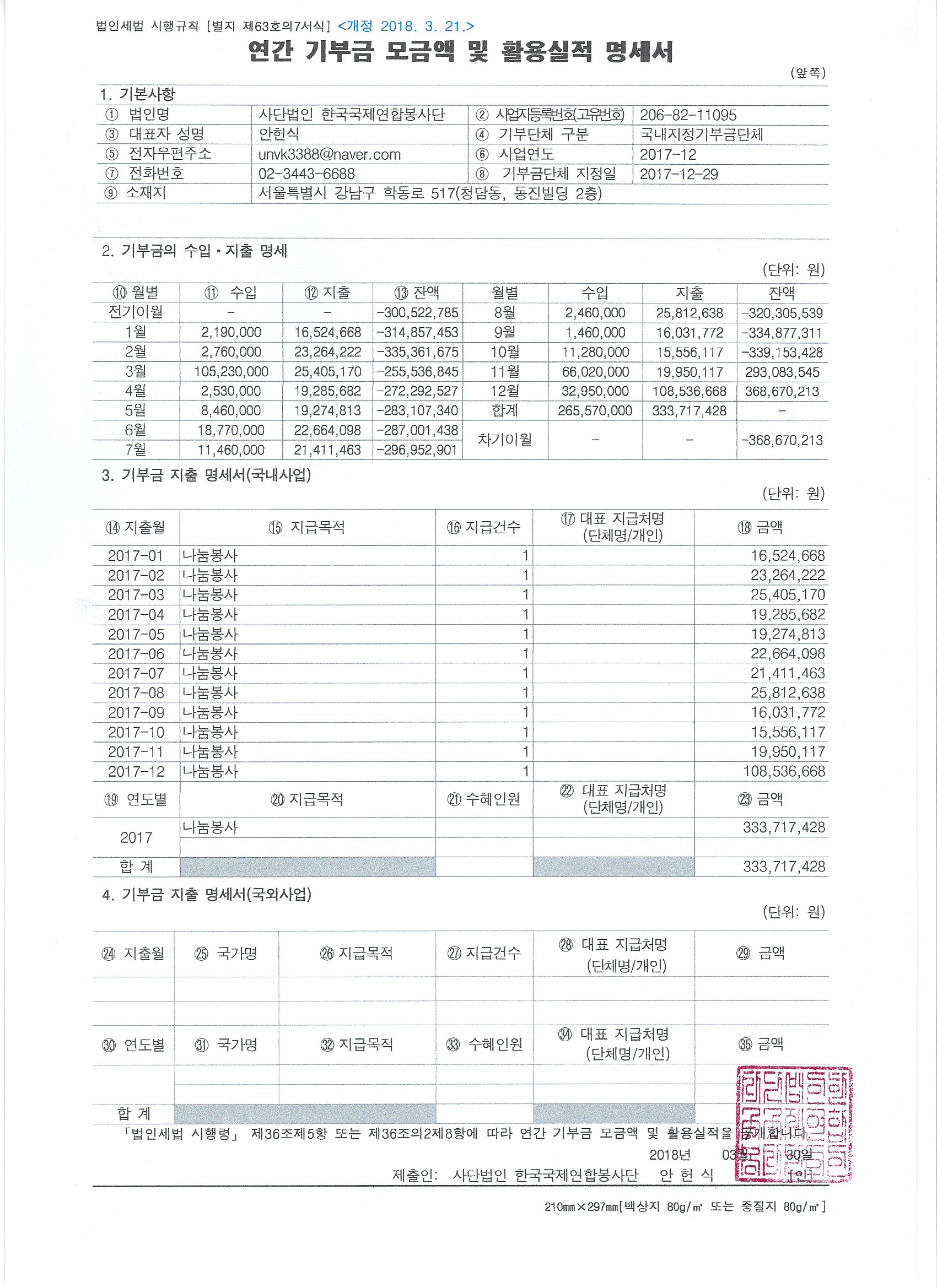 | 7 | 2017년 연간 기부금 모금액 및 활용실적 명세서 | 18-03-30 | 763 |